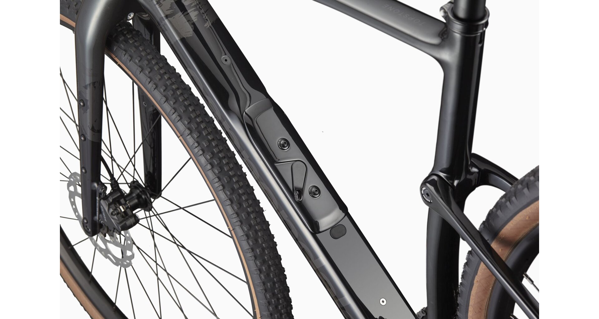 | Fork: | Topstone Carbon, 1-1/8" to 1.5" steerer, 55mm OutFront offset, flat mount disc, internal routing, 12x100 thru-axle, triple bottle/gear mounts, fender |