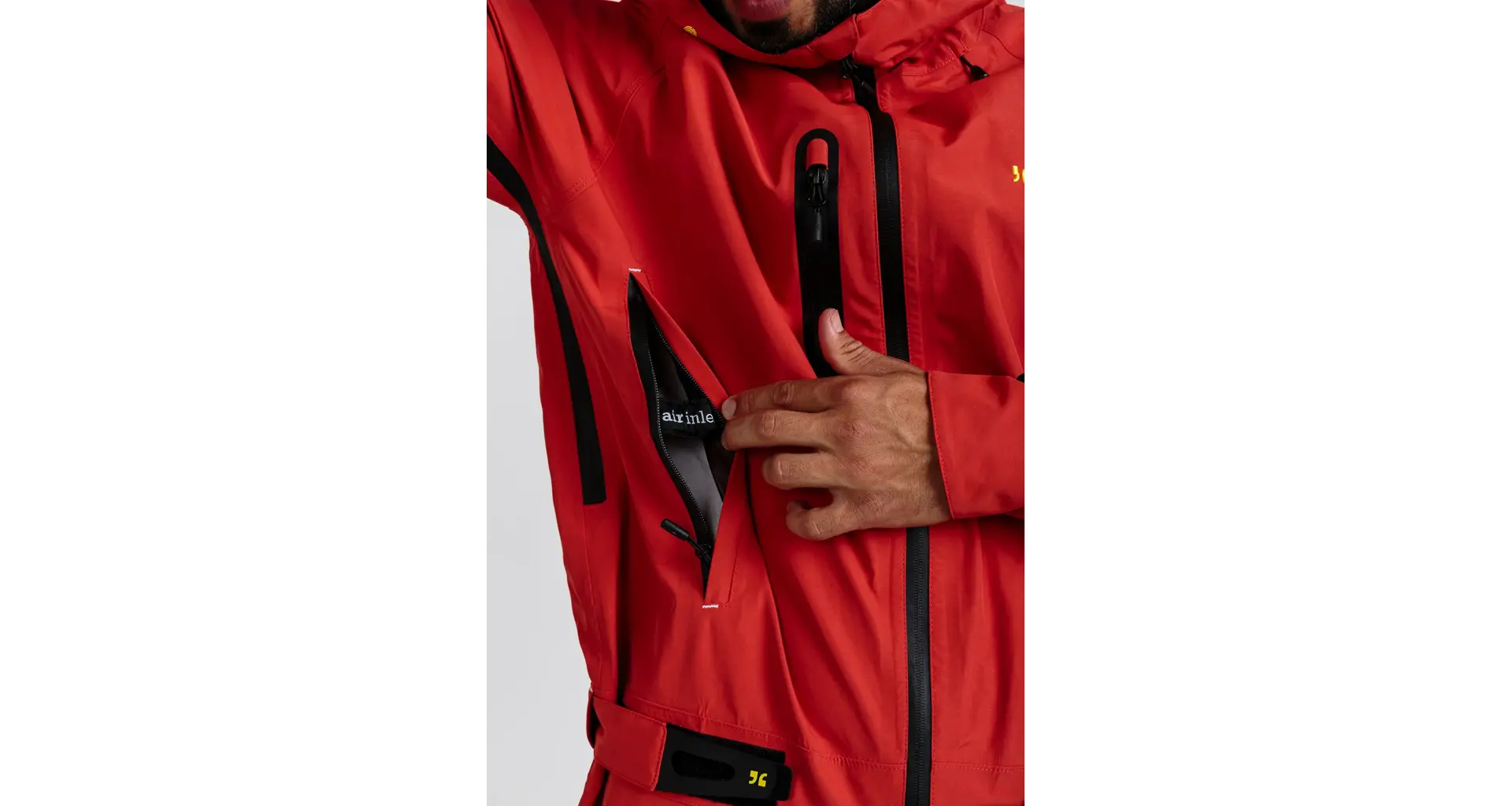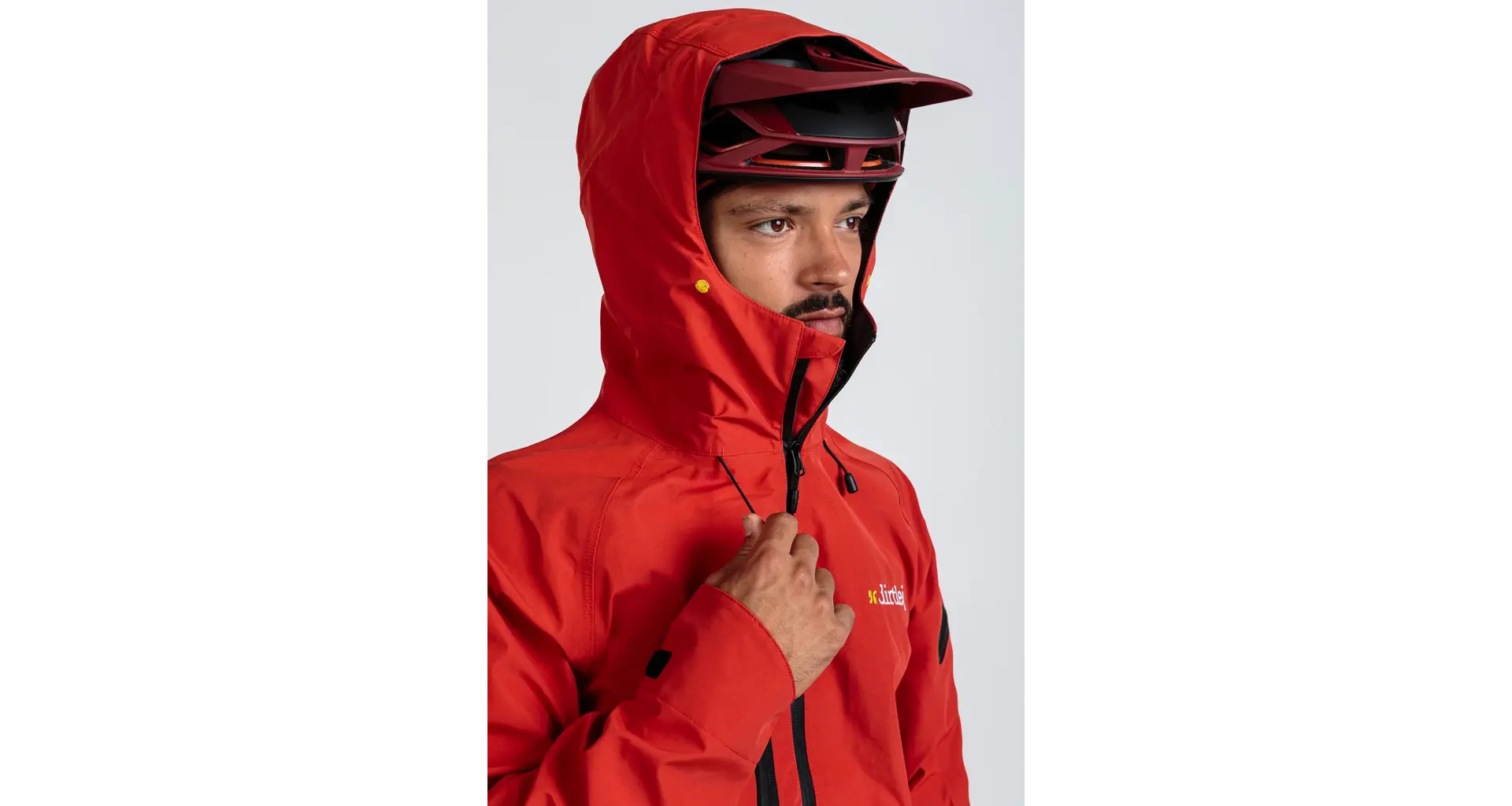 The hood, which fits over the helmet, has a new cut for even better weather protection. When needed, it can be rolled up into a protective collar and won't flap in the wind.