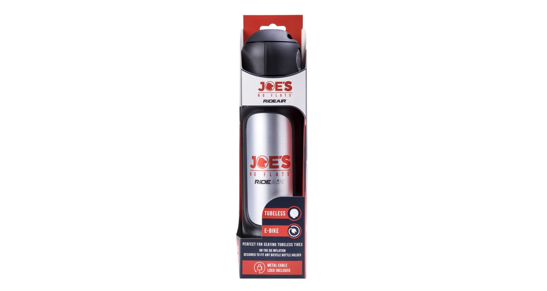 The Joe's RideAir is a refillable multi-use portable air capsule that lets cyclist inflate bicycle tires at a push of a button. Commuters can enjoy fast clean inflation by carrying it on the bicycle using the standard bottles cage. For tubeless users it eliminates the need for a compressor or going to the gas station for first tubeless installation.