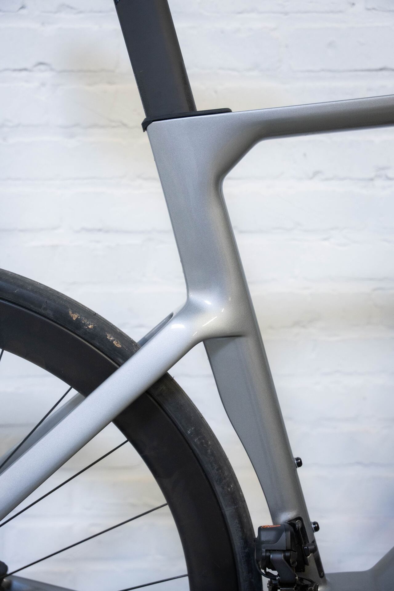 Finally, the lower head tube with integrated cockpit allows the rider to have a more aggressive aero position, resulting in a reduced frontal area.