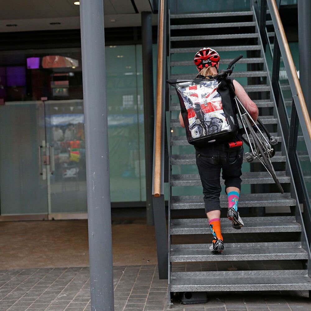 The ingenious Messenger-Bag Pro allows couriers to use the backs of their bags as mobile billboards as they cruise around town, thereby enabling them to earn an additional income by advertising for clients or to advertise their own services. The transparent, waterproof sleeve is large enough for A3-sized posters designed to attract attention on the streets.