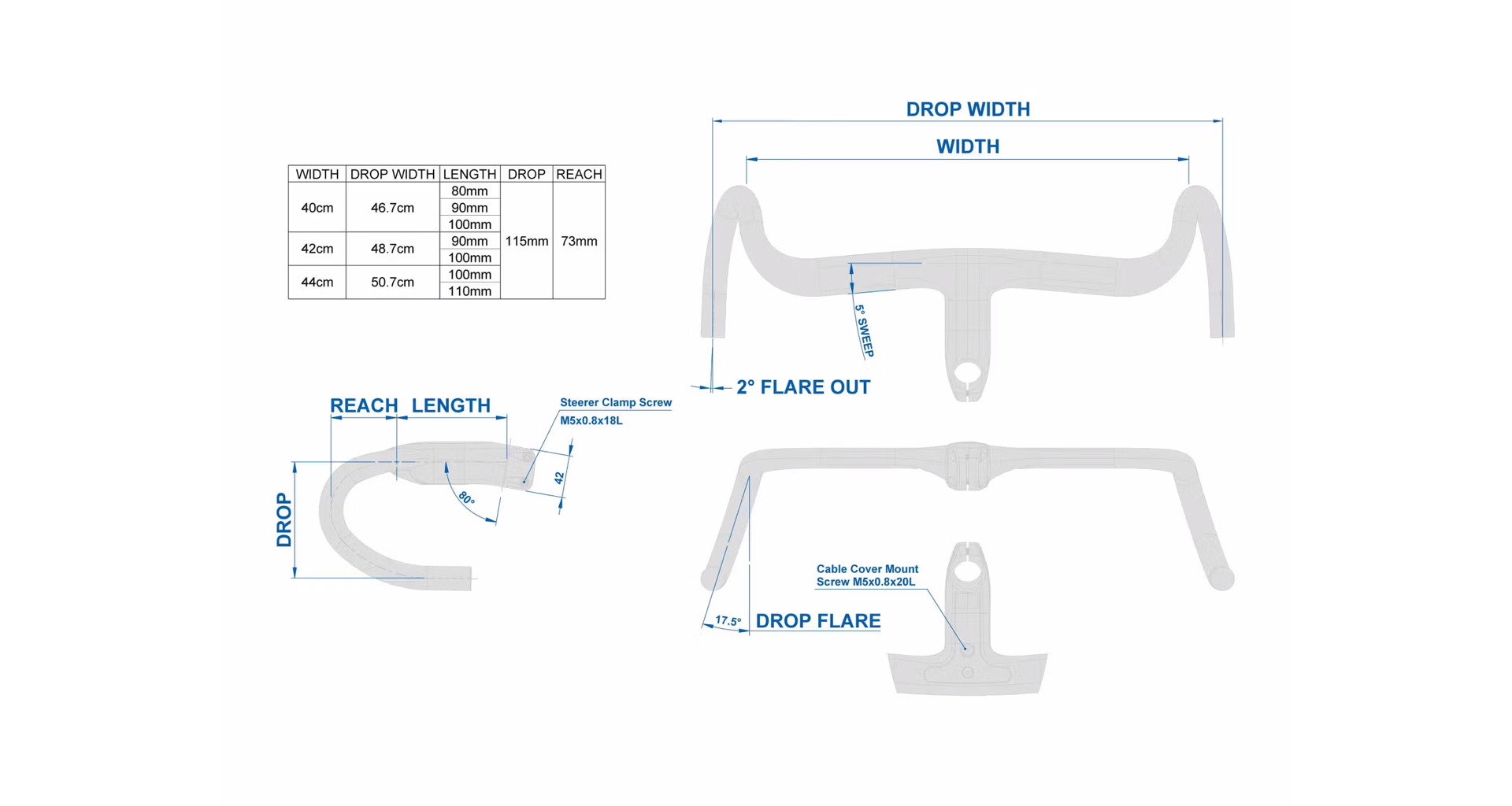 - Drop flare: 17.5°