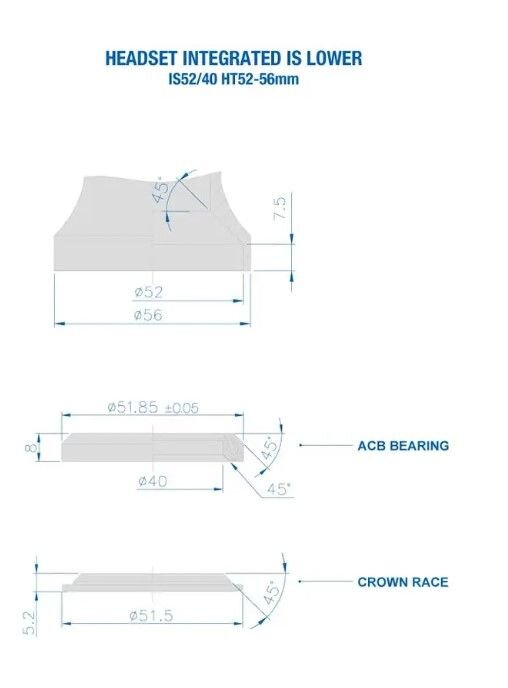- IS52/40 (1.5") bearing: 51.9/40/8mm 45°/45° - sealed cartridge (ACB) – titanium coated