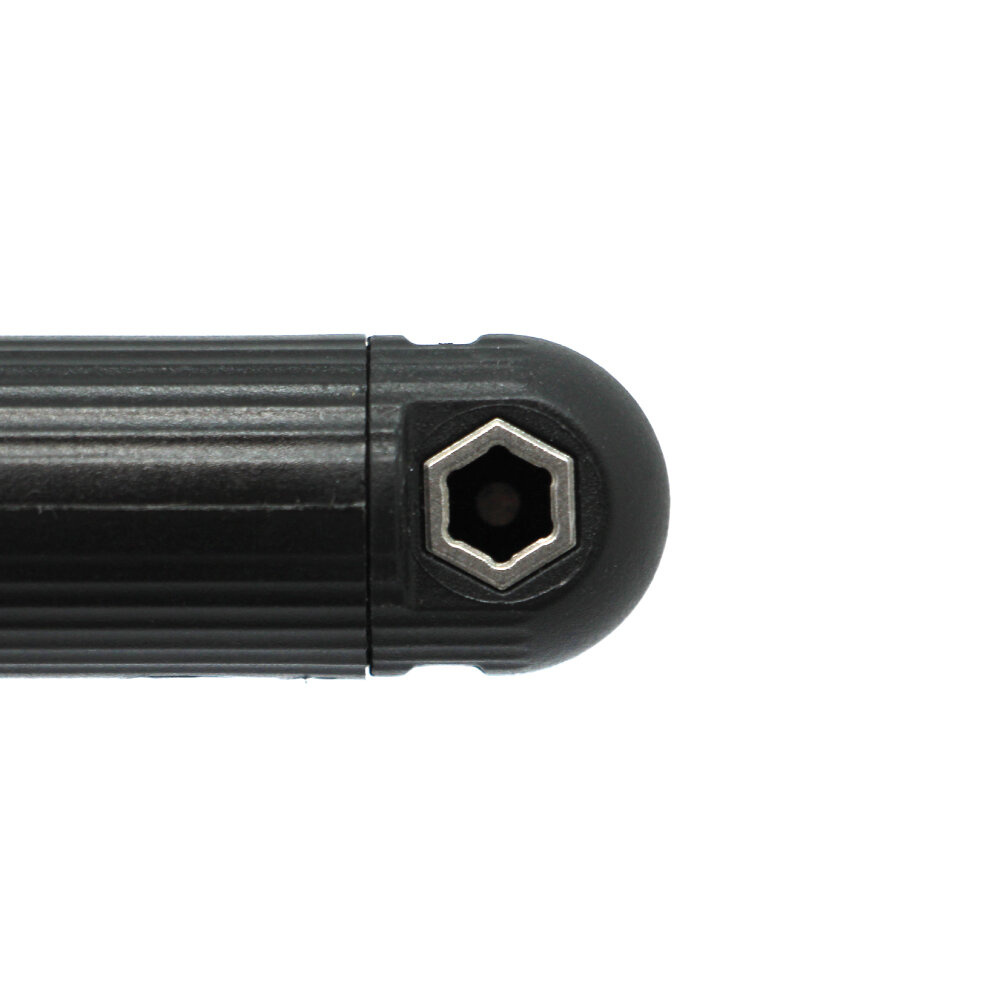 This tool is based on the design of award-winning cycling tools from Eurobike and is truly unique. Its ergonomically designed alloy housing fits comfortably in the hand, while the molded nylon grooves ensure a secure grip. With two magnetized bit anchor positions, the user can choose between the "L" position for optimal leverage or the "I" position for hard-to-reach places like bottle cage screws.
