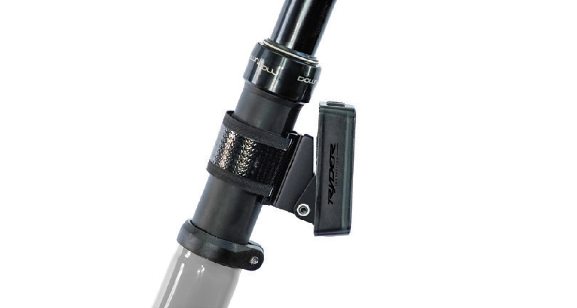 The mounting system fits most bicycles and allows attachment in multiple locations, ensuring secure fastening even in rough terrain. The soft rubberized Velcro strap enables tool-free mounting on the seat post, rear stays, or saddle rails.