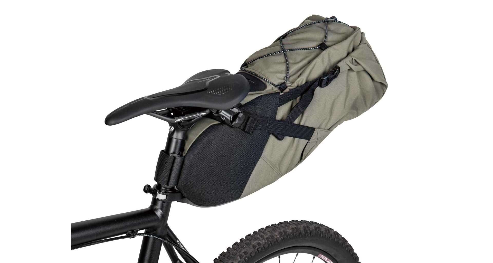 Listen to your inner voice of adventure. Pack up your gear, get on your bike, and ride that epic trail. BackLoader is a large capacity seat bag specially designed for bikepackers providing a streamlined way to carry gear without the need for a rear rack. Constructed of lightweight, highly water resistant and durable materials, it mounts and removes quickly. The upgraded saddle mount system, in conjunction with compression straps, reduces the pendulum effect associated with large rear payloads, providing a comfortable ride for those long miles. An easy access waterproof inner bag is included to keep contents completely dry.