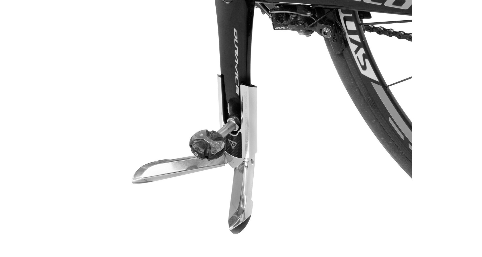 The evolution of our easy-to-use, portable, crank arm bike stand . The FlashStand® Slim X unfolds to quickly slip over the lower crankarm to hold your road bike upright on smooth, flat surfaces. Fits 700c road bikes with crank arm dimension ≤ 41 x 16 x 80 mm (WxDxH). When folded the FlashStand® Slim X small size easily slips into a jersey pocket or saddle bag.