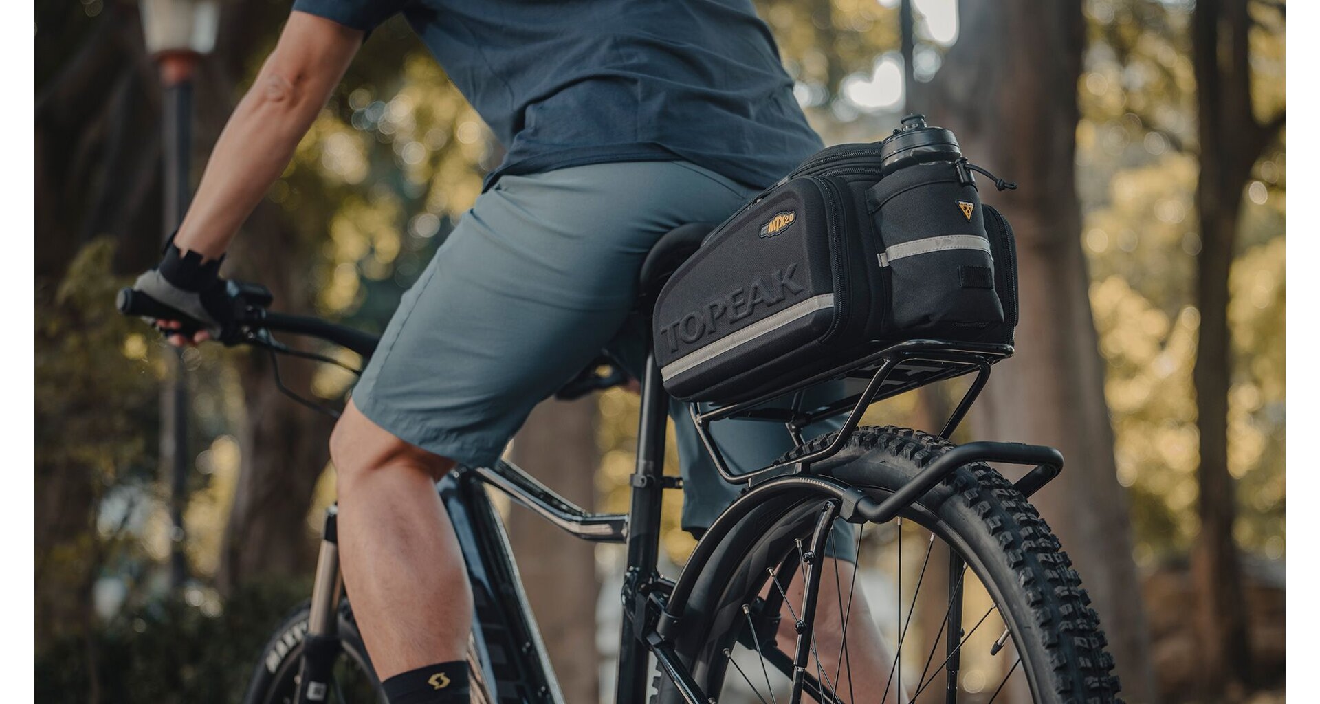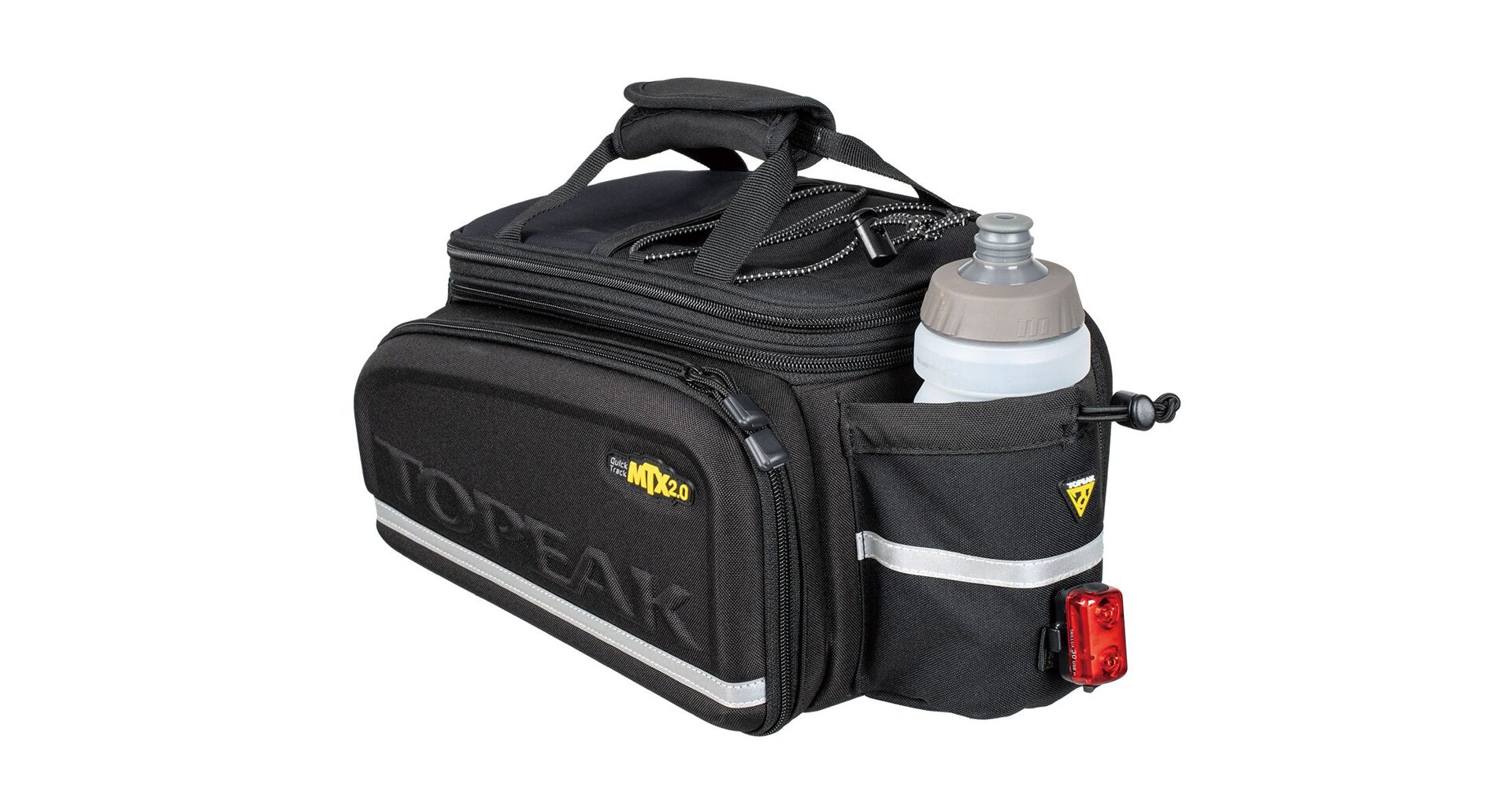 The MTX TrunkBag uses a unique material process to provide our largest, stiffest, and most weather resistant MTX series bag. In addition to the expandable top section and rear water bottle holder, the side panels expand to full panniers maximizing capacity.