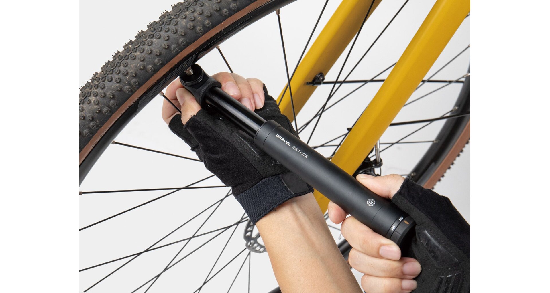 The Gravel 2Stage mini pump features an innovative 2Stage pressure selector that lets you choose high volume or high pressure to quickly fill your gravel bike tire effortlessly. Compact size easily fits into a jersey pocket.