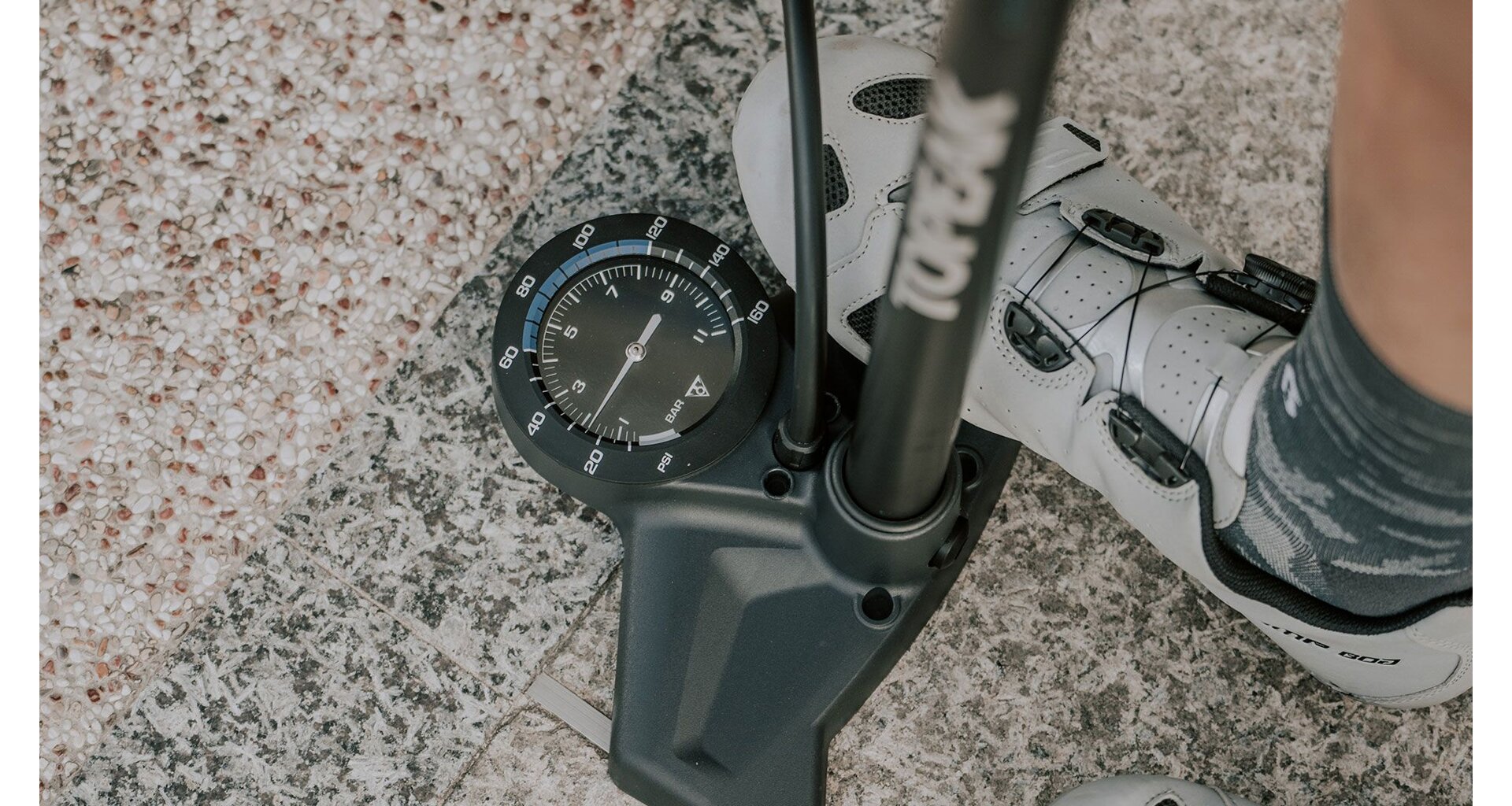 A floor pump specifically designed for road bike and other high pressure tires featuring a large 3.5" easy-to-read base-mounted analog gauge for measuring tire pressure quickly and accurately. An optimally sized steel barrel provides high pressure, up to 160 psi / 11 bar effortlessly. Equipped SmartHead® pump head automatically adjusts to fit either Presta or Schrader valves and is one of the best value floor pumps on the market.