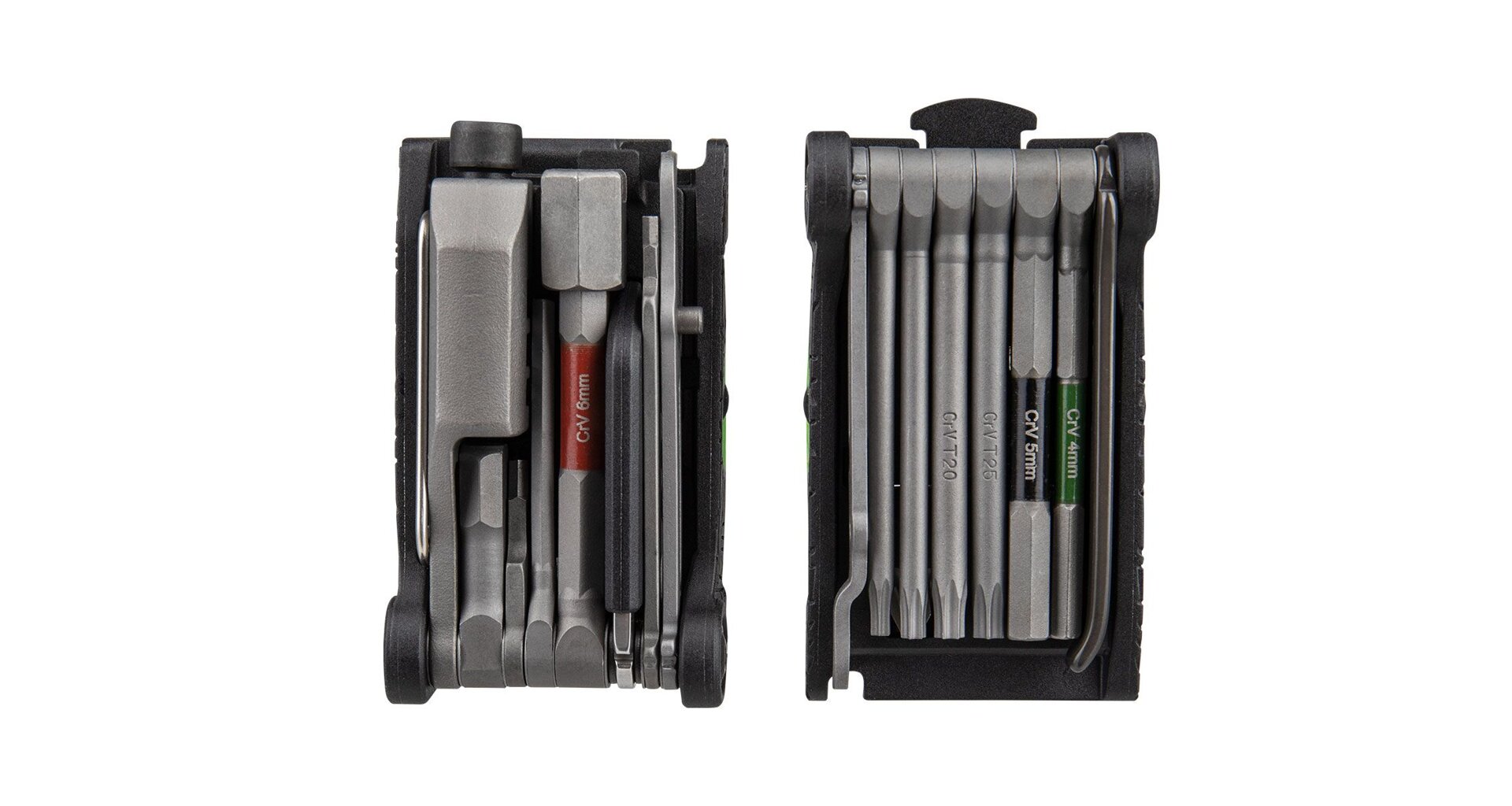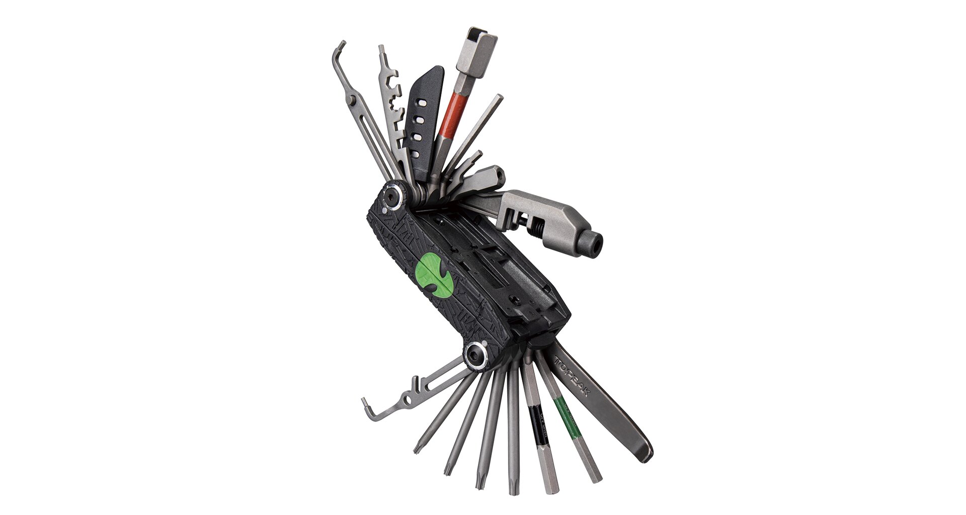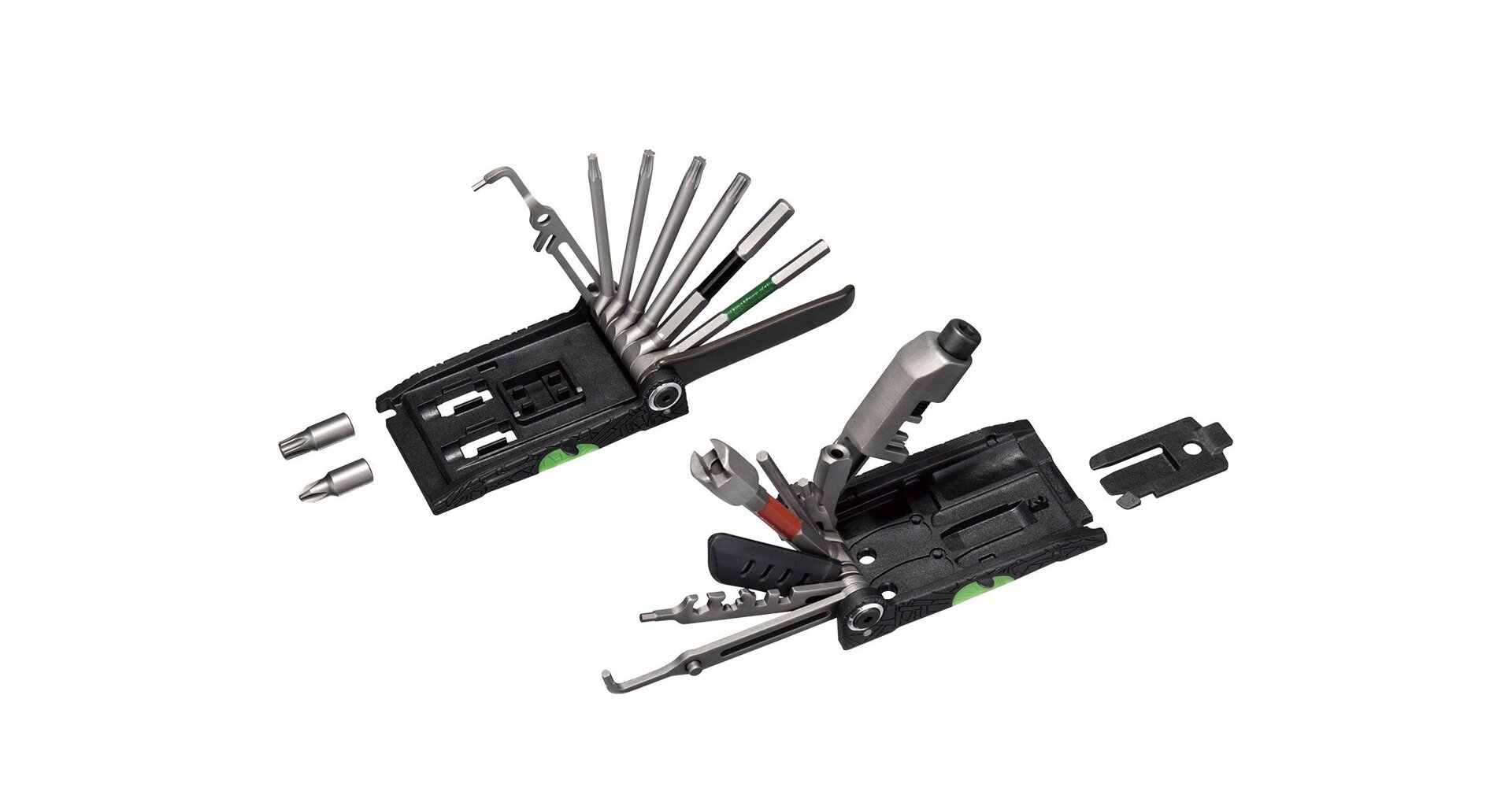 The evolution of the world famous ALiEN tool transforms the X into the ultimate 34 function pro quality folding tool. The ALiEN X features T10 / T15 / T20 / T25 / T30 Torx® tools and adds a master link pliers for use on master link equipped single/multi-speed chains. Two piece design allows easy access and full use of all tools and adds leverage when tightening bolts. Includes self-tightening tools and a nylon bag.