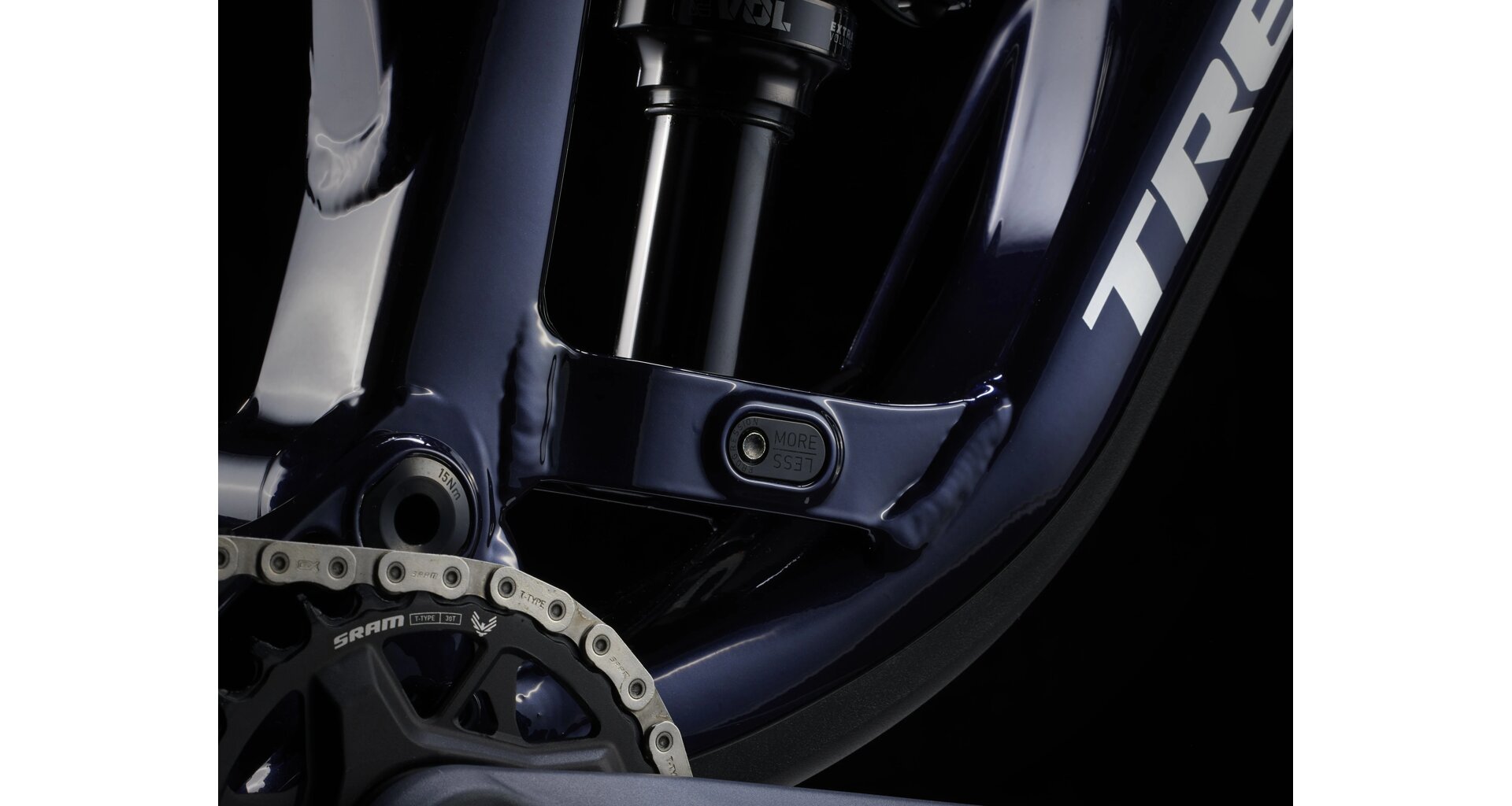 Trek technology that lets you easily adjust your bike's geometry. With a simple twist of a small cam on the rear end, you can choose either a lower and flatter setting for more stability on descents, or a higher and steeper setting for quicker control and better performance on climbs. This flexibility lets you fine-tune your ride to suit the terrain and your style.