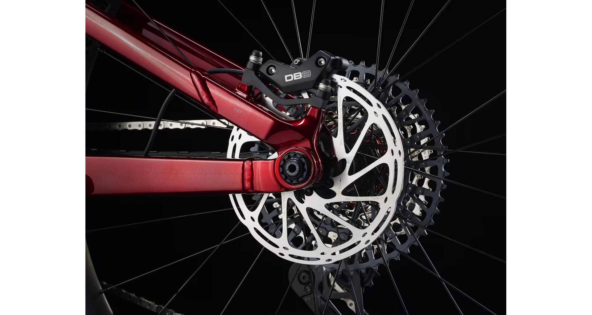 - SRAM DB8 four-piston brakes.