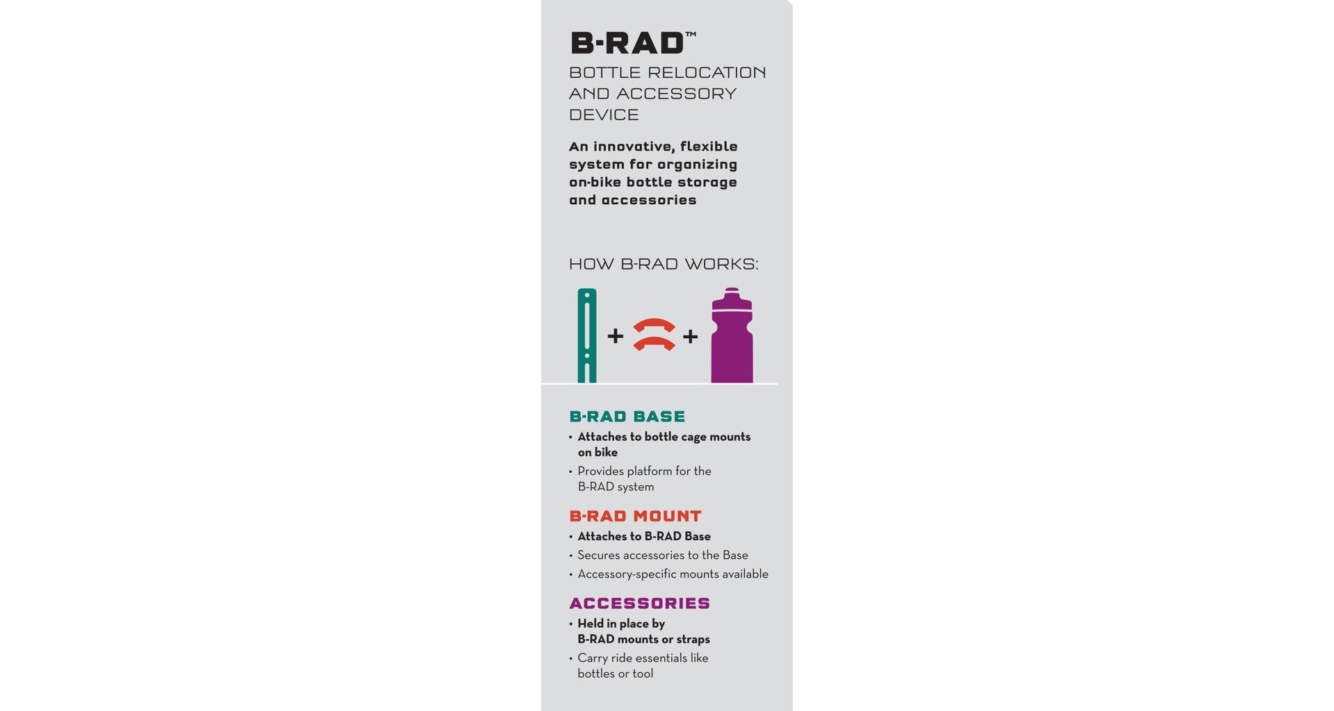 Double Bottle Adapter is part of the B-RAD™ system that allows you to fit 2 bottle cages side-by-side.